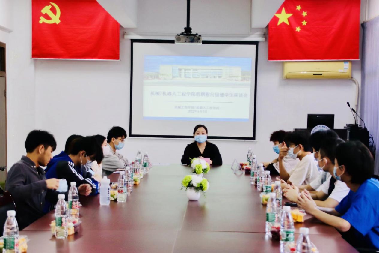 本网讯(记者 李智)面对严峻复杂的疫情防控形势,为了表达清明假期对留穗学生的人文关怀,4月5日上午,机械工程/机器人工程学院在B6-303开展假期慰问留穗学生座谈会,学院党总支书记任春雯、辅导员和各年级留穗学生代表参加了本次座谈会。