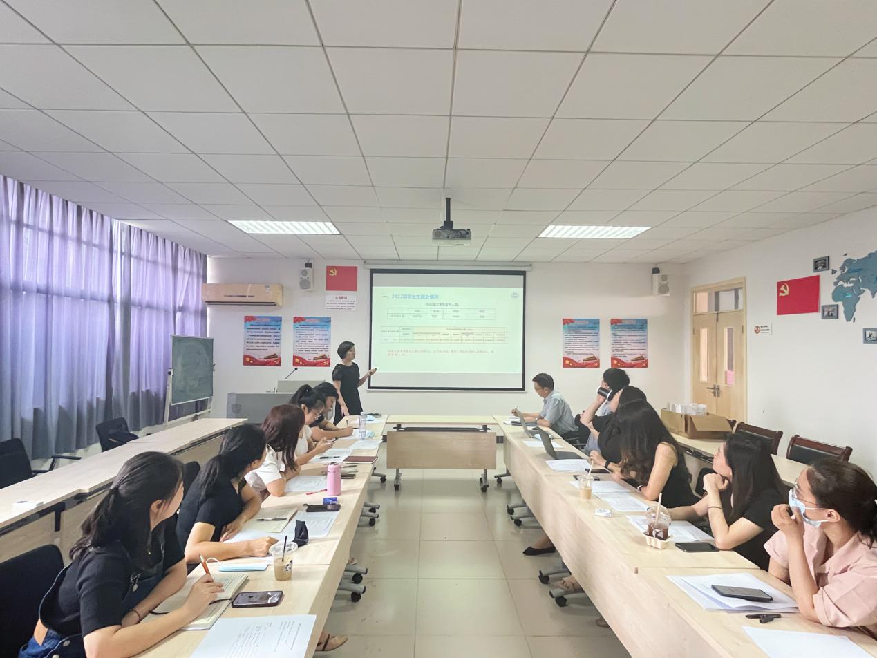 2022届就业工作仍需进一步跟进,2023届就业工作即将全方位开展。学工办副主任胡靖姗就2023届就业工作做了全面的梳理,对重要时间节点和重要工作做了强调。