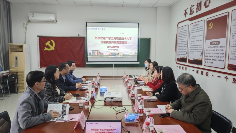 本网讯(记者 郑渊虬)3月15日下午,广东工商职业技术大学建筑工程学院院长沈丽、党总支书记江涛章一行到访我校土木工程学院。土木工程学院院长季静、书记郑梅、副院长苑苗苗及教师代表热情接待,双方在B1-216会议室举行了工作交流座谈会。此次交流聚焦智能建造专业建设,相互借鉴学生管理工作经验,共同探讨民办院校教学育人工作的创新与发展。