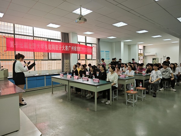 本网讯(记者 彭婧 王超)为营造浓厚的校园学术氛围,提高学生科技创新和专业技能能力,培养创新意识和团队精神,促进学生参加科技创新活动的积极性。4月24日下午,土木工程学院在B1、B7实验室举办了第十七届全国大学生结构设计竞赛广东省赛校内选拔赛暨广州城市理工学院第十届结构设计大赛(下称“结构设计大赛”)。土木工程学院院长季静,党总支书记郑梅,校团委书记王羽,土木工程学院副院长苑苗苗及学院全体师生共同参与本次大赛。