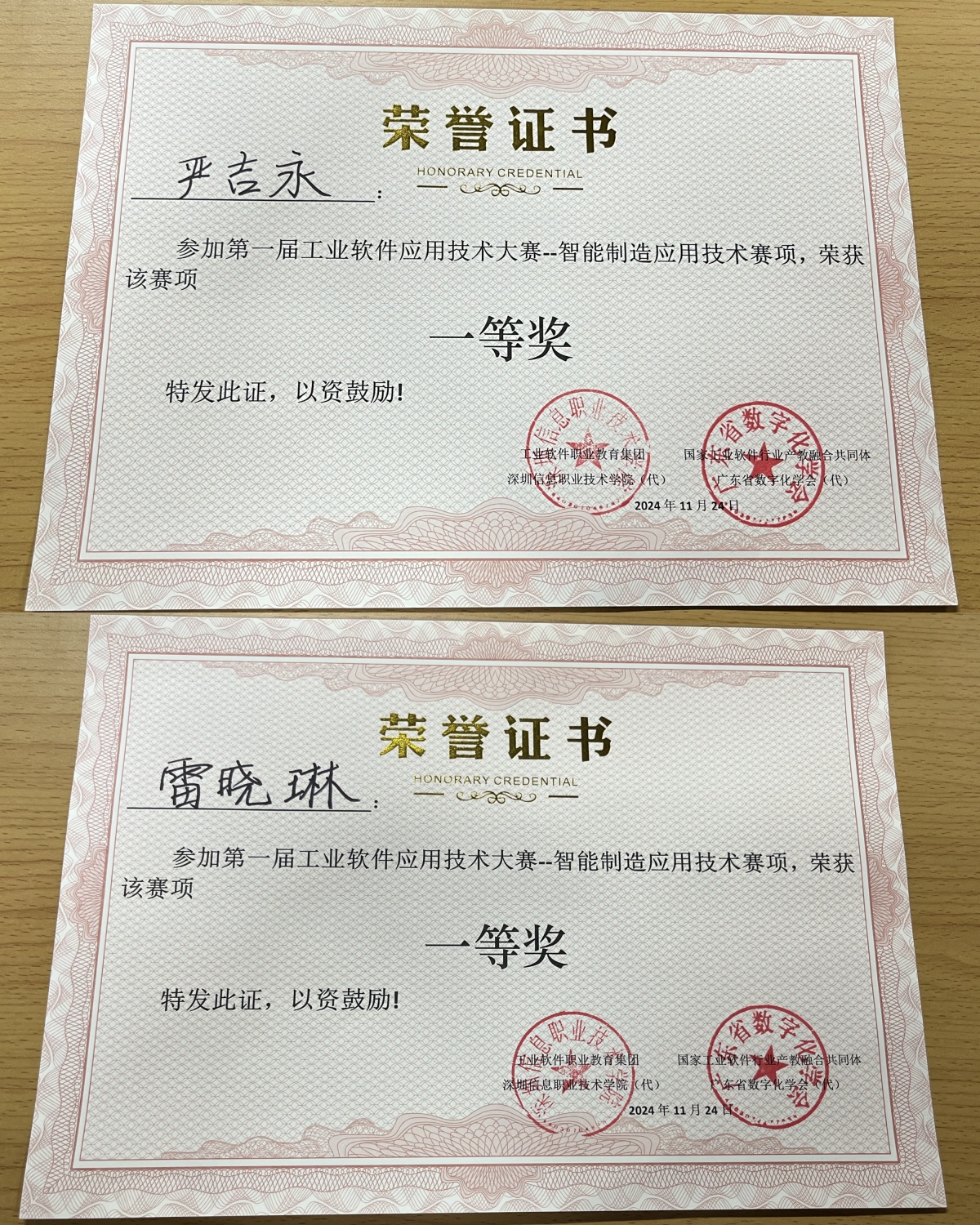 参赛学生严吉永和雷晓琳表示,工业软件应用技术比赛不仅考验自身的理论知识,更注重实践操作和创新能力,这既是一个难得的机会,又是一个新的挑战。当得知团队获奖,对于我们来说不仅仅是对自身努力的肯定,更是对团队精神和创新能力的认可。