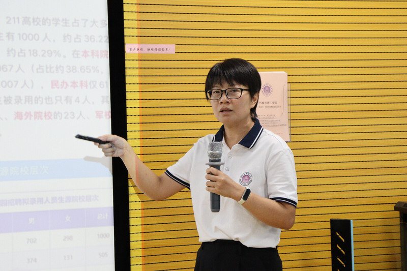 符红勋首先就学院近五年就业情况进行了系统分析。她指出,学院毕业生就业单位涵盖电网公司、电力及新能源相关的企业,就业的专业相关度比较高。结合往届毕业生的具体去向、企业录用条件与人数变化,她强调,近年来电网公司等用人单位对毕业生的能力要求不断提高,民办本科毕业生面临的就业竞争更为激烈。她提醒同学们要客观分析自身条件,找准职业定位,充分发挥专业优势,选择适合的就业方向。