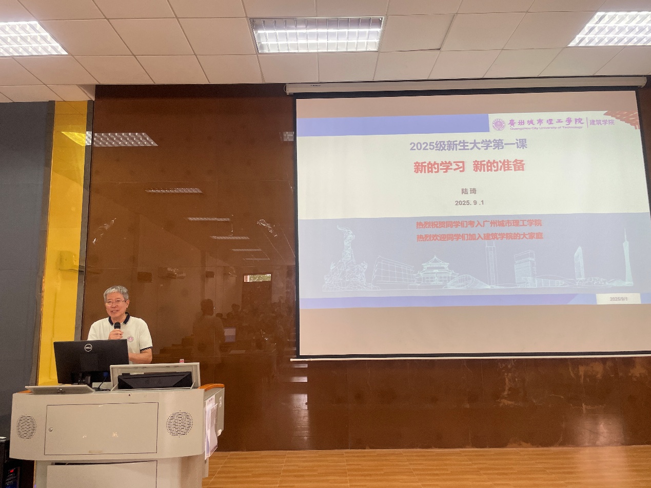院长陆琦以《新的学习 新的准备》为题,从因材施教、实践教学、如何学习三个方面,详细介绍了建筑学院“1142”应用型建筑类人才培养模式。陆琦强调坚持立德为先,要注重价值塑造、品德养成,要注意学习内容、学习方法、学习态度的三大转变。他向2025级新生提出四点要求,一是要克服陋习、严于律己;二是要丢掉幻想、脚踏实地;三是要培养良好的职业道德和职业技能;四是要培养设计师优秀素质,加强专业知识、综合知识以及跨界知识融合学习。