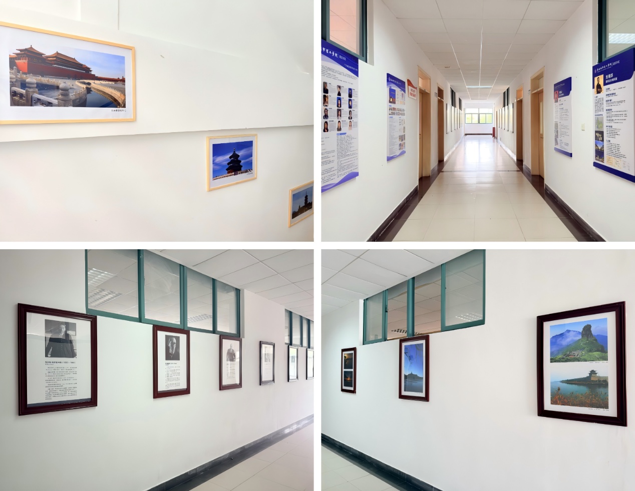 学院楼东西侧楼梯,按照年代发展历史展出中西方代表性建筑以及园林景观,并作为中外建筑史、园林史等课程思政的重要支撑,在行走过程中浸润式学习建筑历史文化。在二楼展出了全院教职员工和教学科研团队的风采,帮助学生加深对学院教师的认识和了解,迅速拉近师生距离。三楼楼道内展示中外建筑大师事迹简介,帮助新生汲取大师精神力量。在四、五楼楼道内展示了近三年师生各类竞赛获奖作品,增强新生以赛促学的意识。同时各楼层橱窗栏内,还展出了各年级学生的优秀作业,希望新生在未来学习过程中自觉对标先进,形成优良学风。